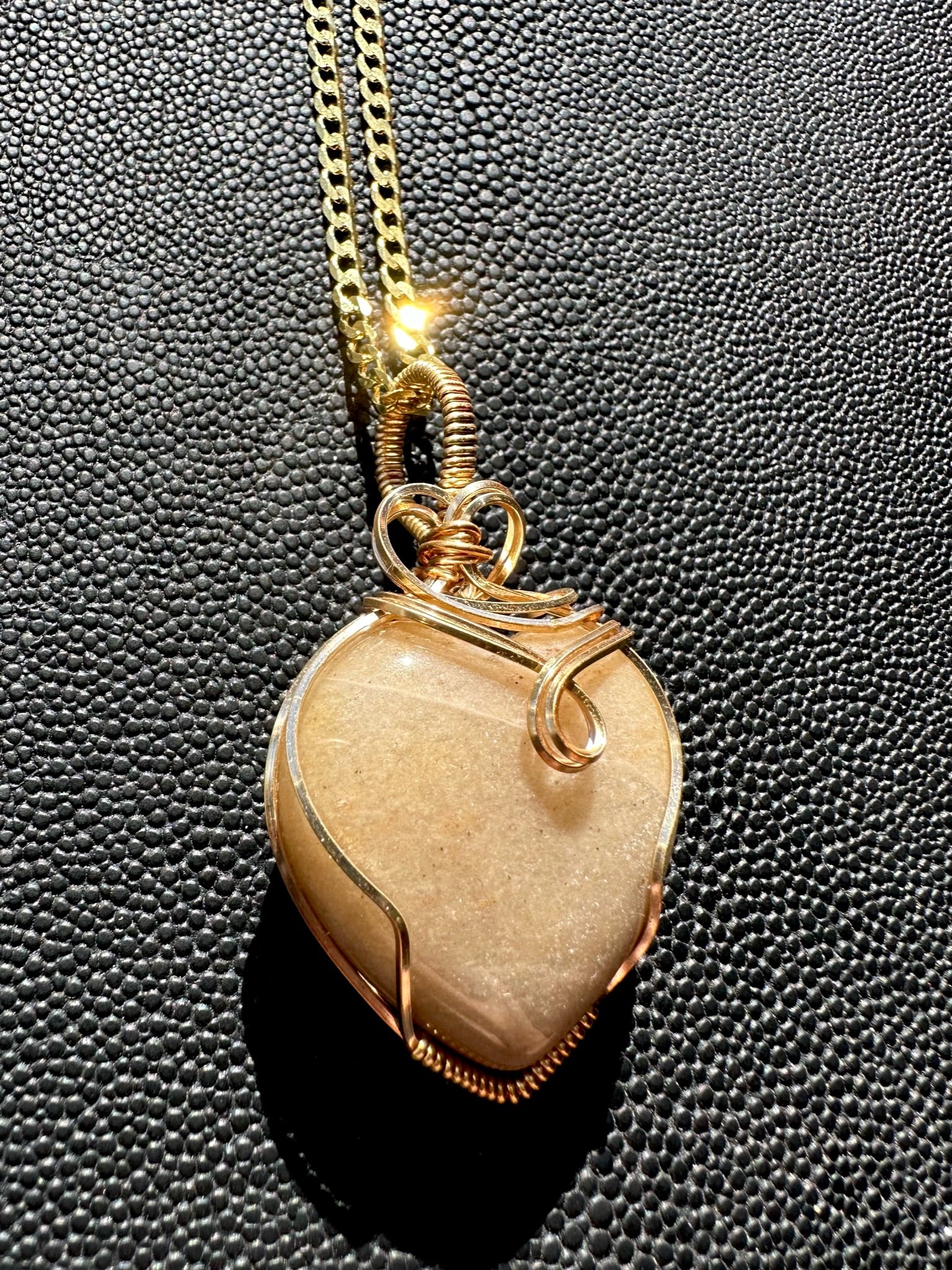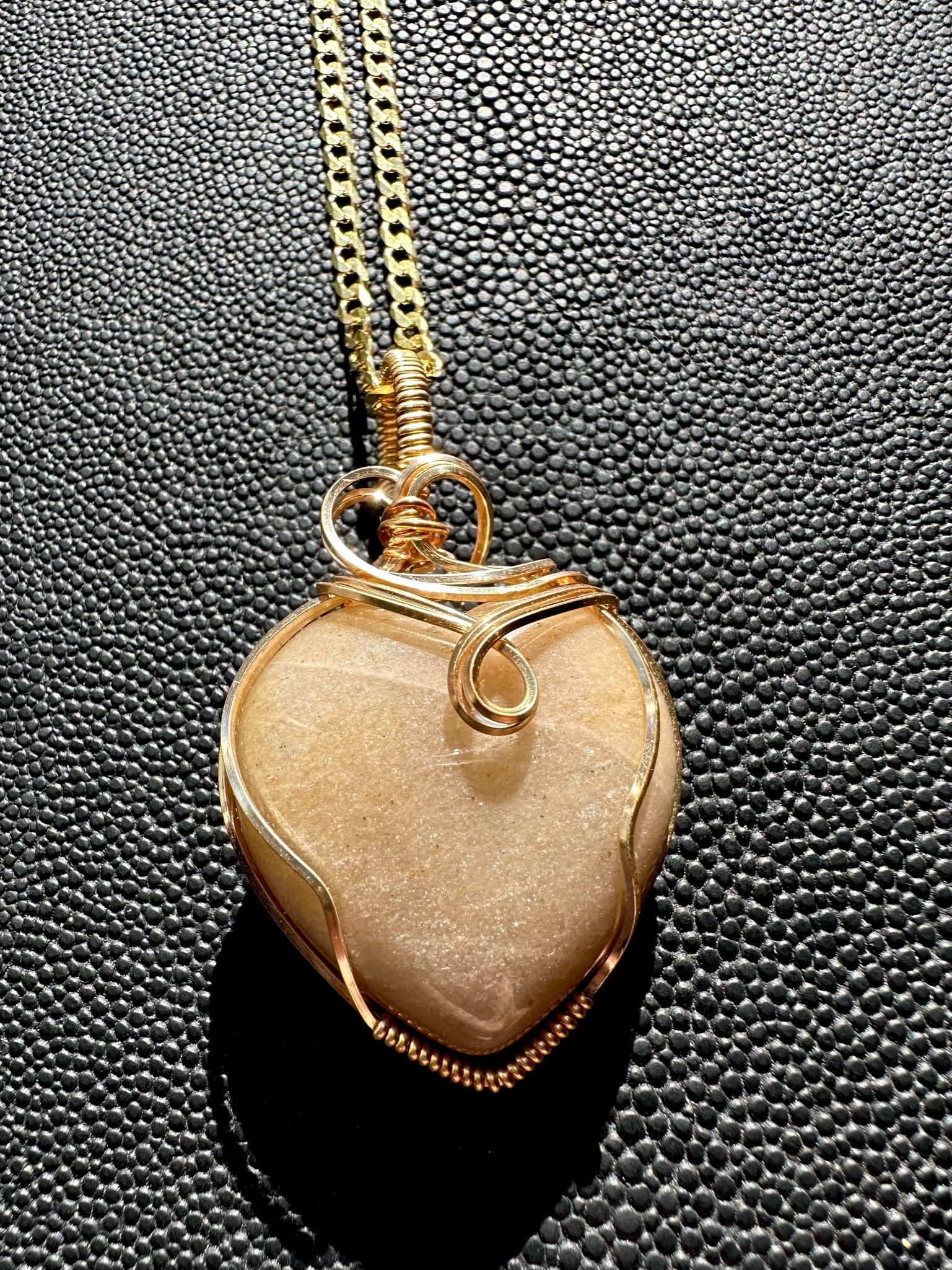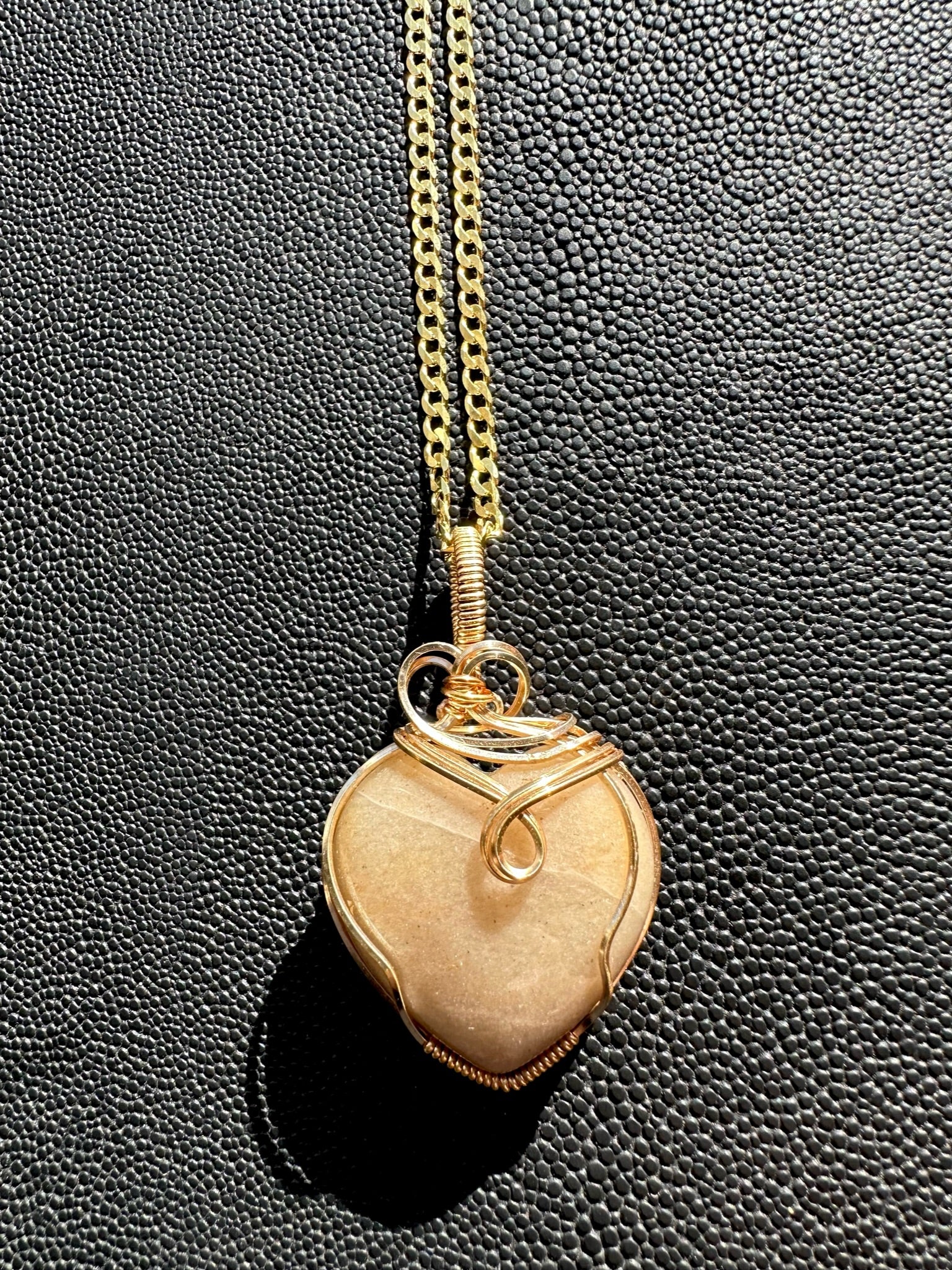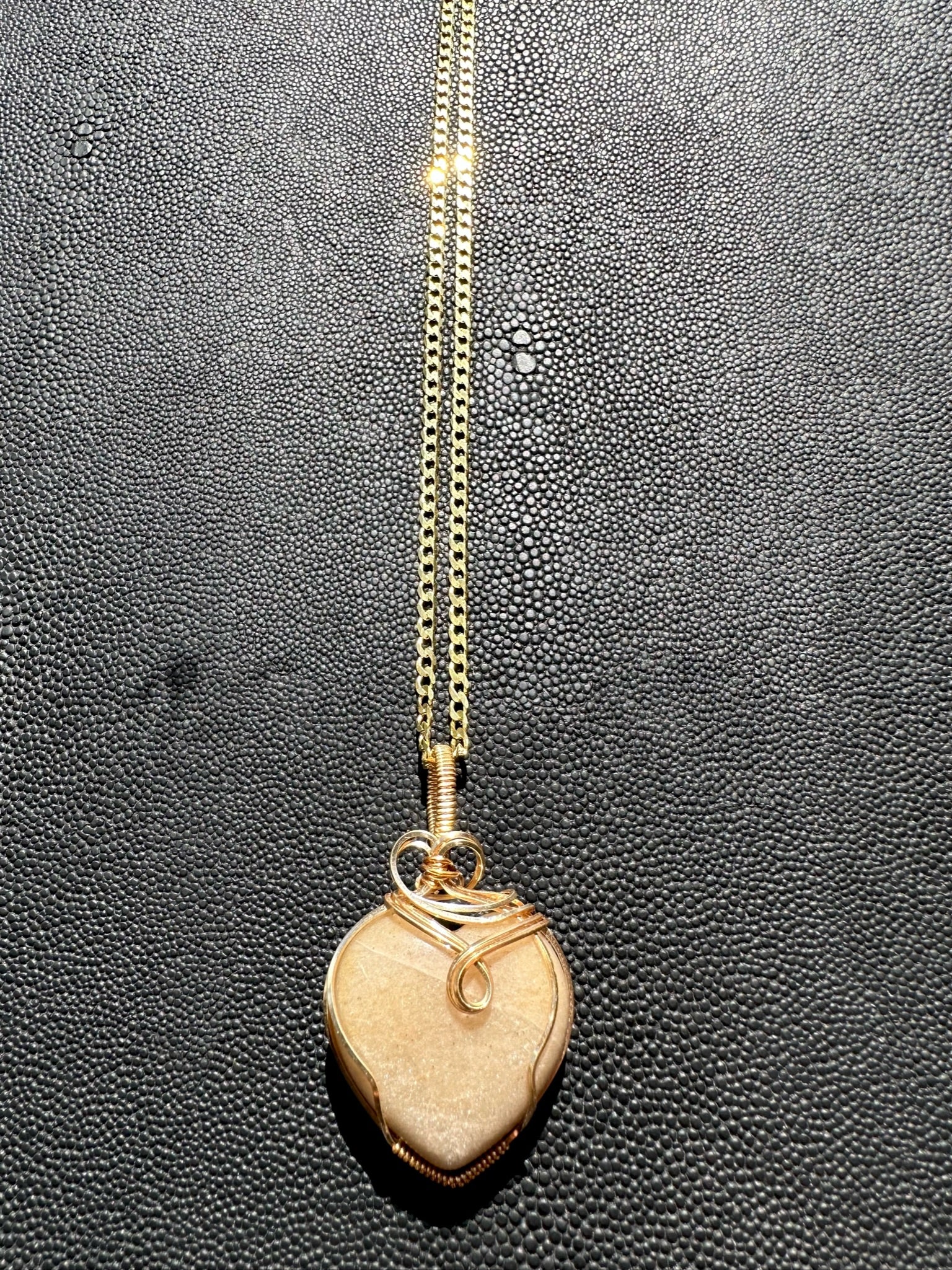Glitter ivory heart wire wrapped pendant paired with curb chain