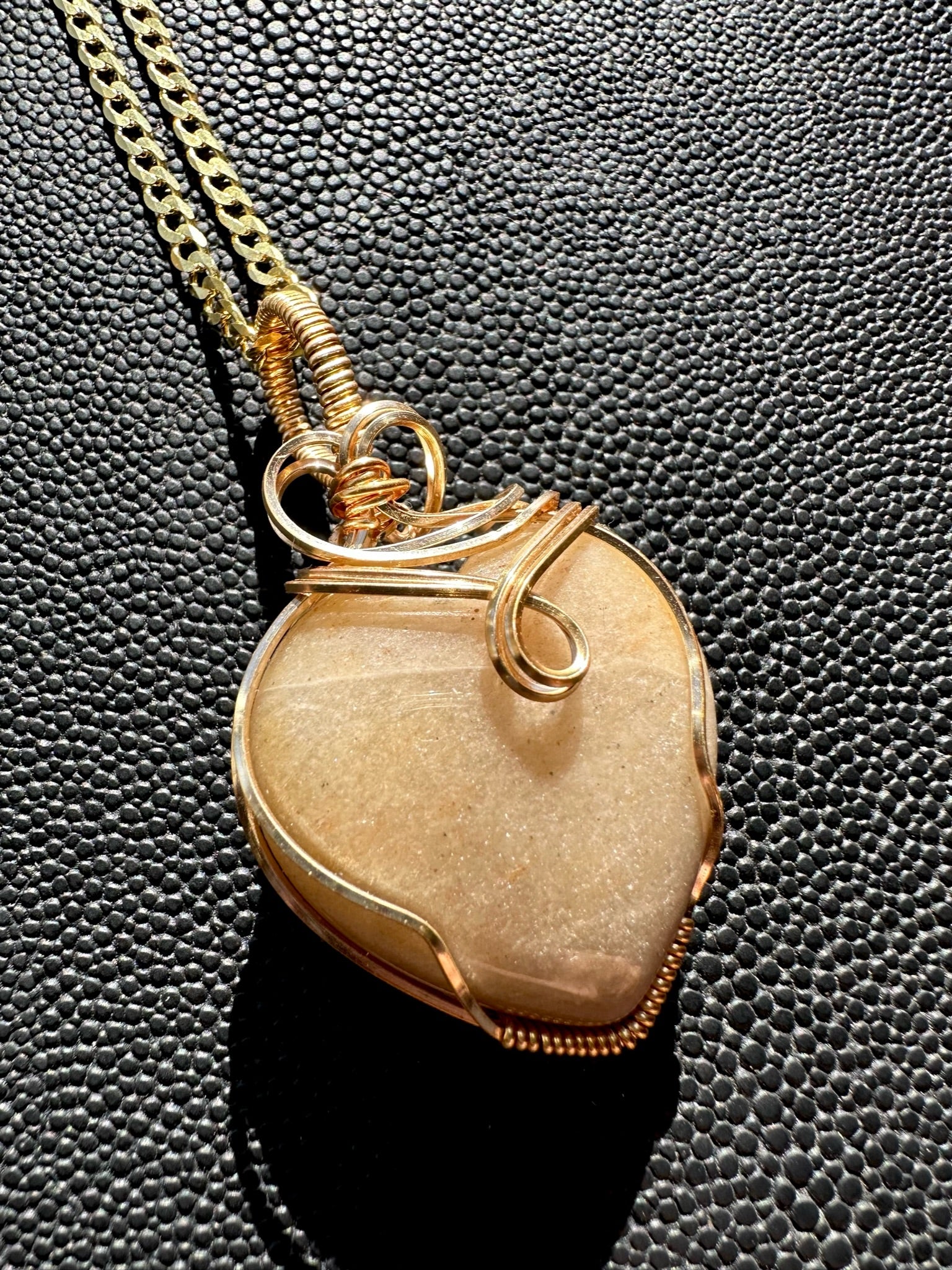 Milky Heart Wire Wrapped Pendant