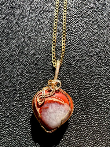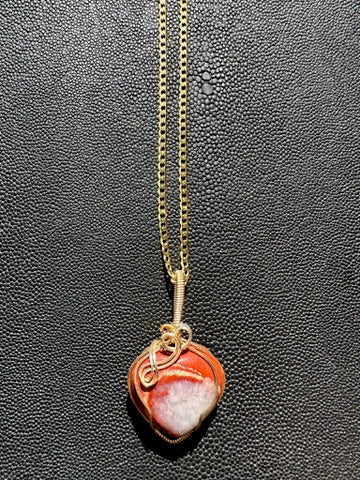 Heart wire wrapped pendant paired with a 14k gold coated curb chain