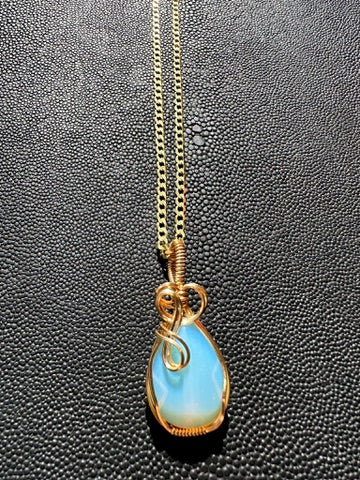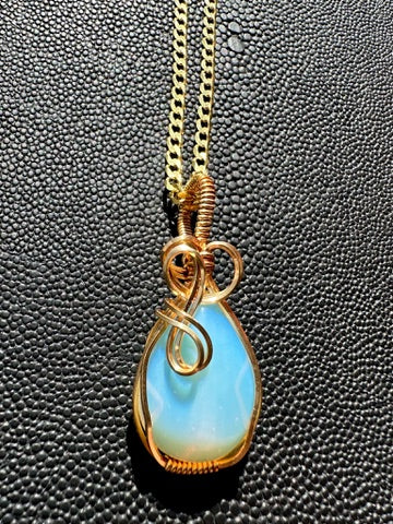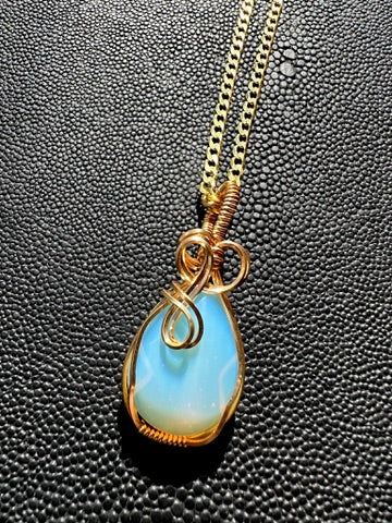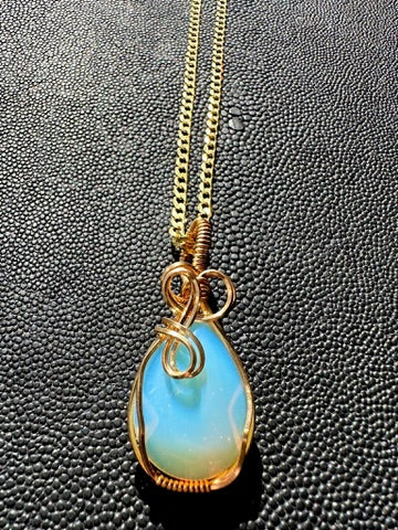 Opalite wire wrapped pendant paired with a 14K gold coated curb chain