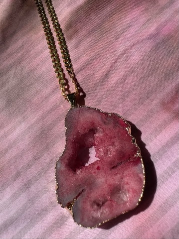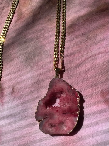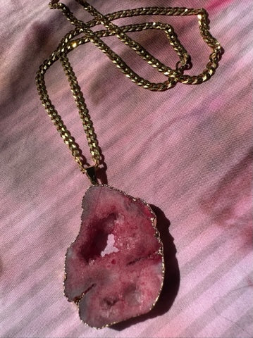 Red Geode pendant paired with a 14k gold coated curb chain.