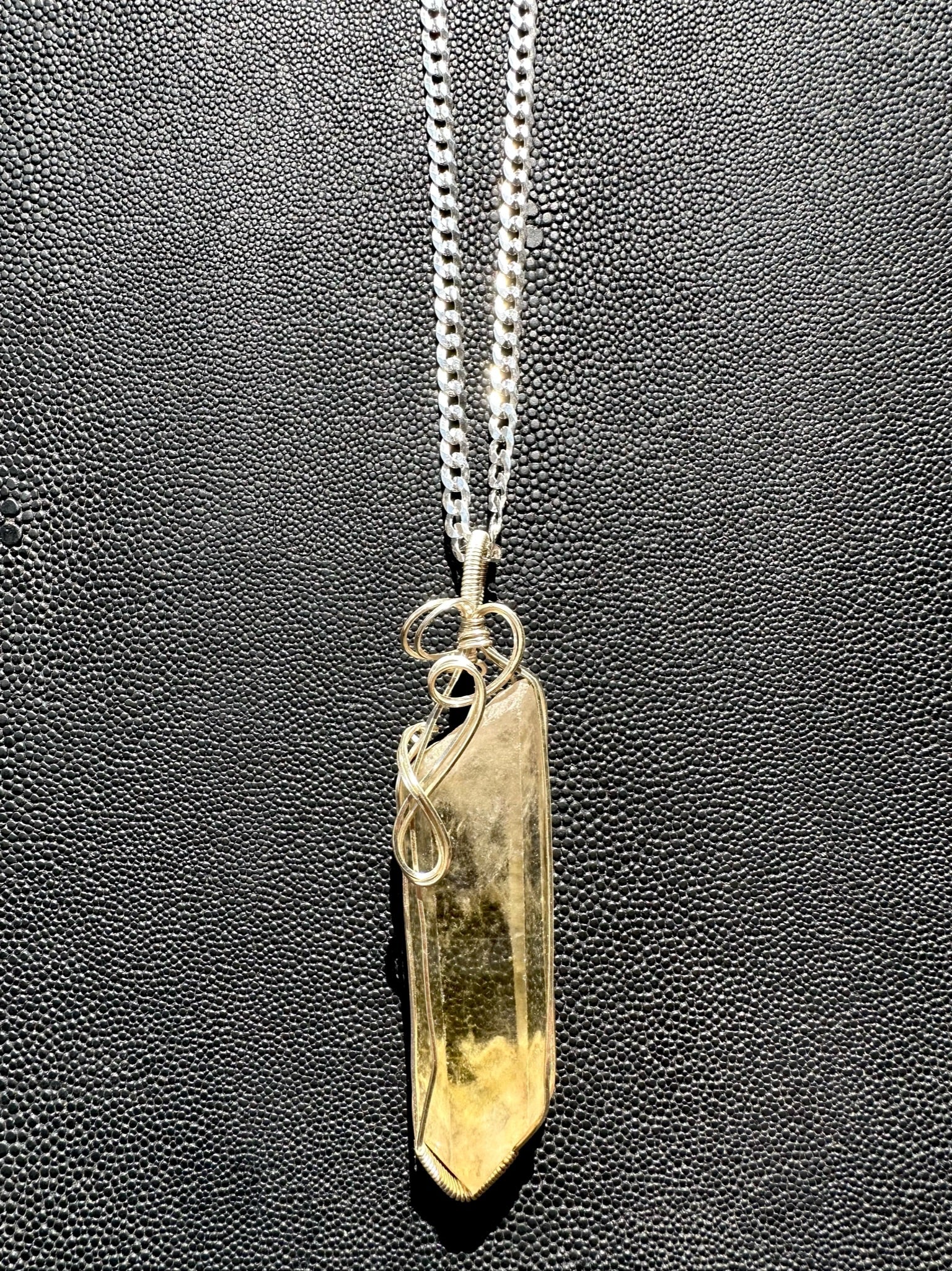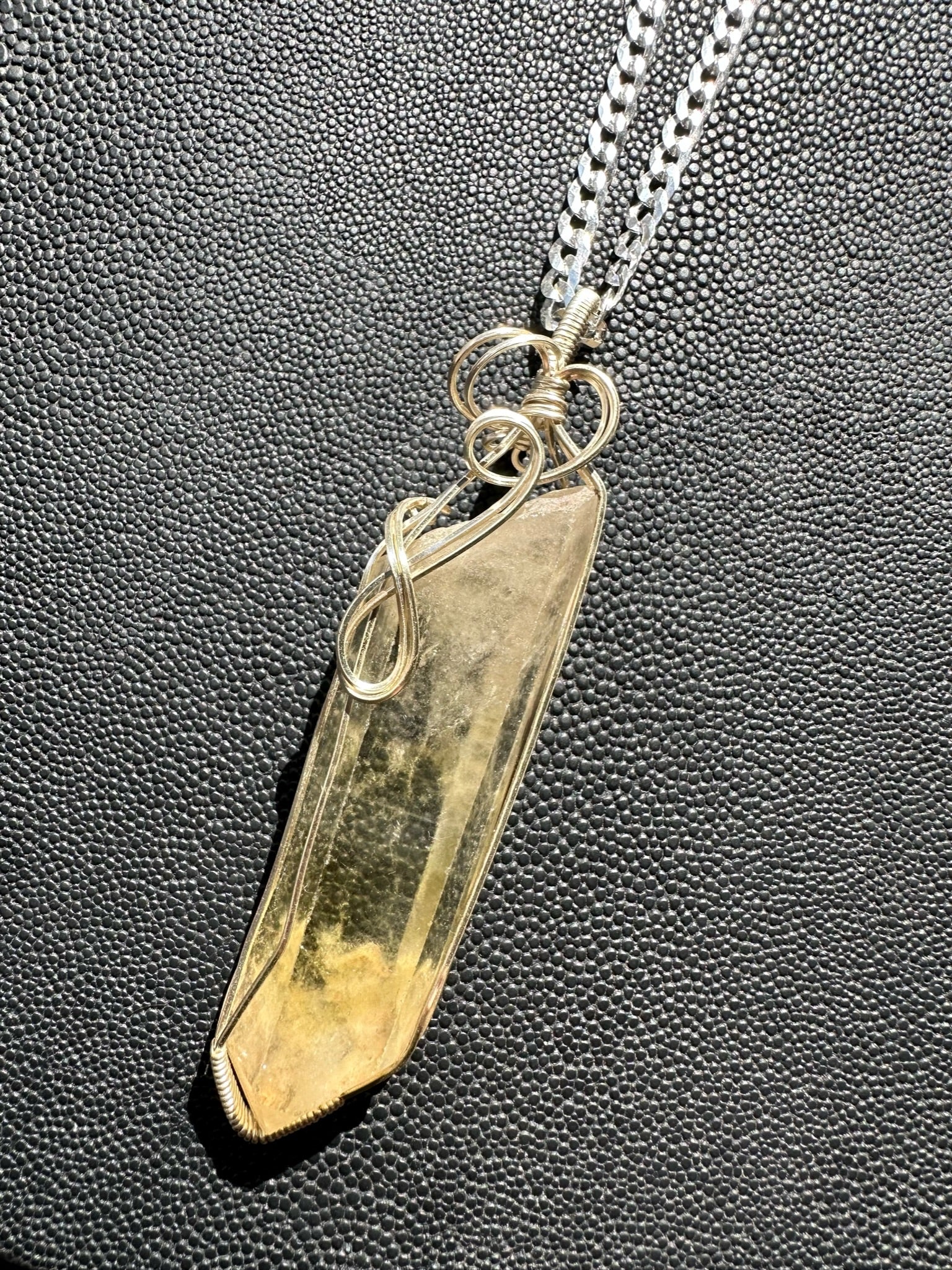 Smokey quartz wire wrapped pendant with Silver curb chain